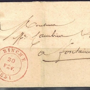 Smukt brev fra Charleroi til Fontaine den 15. juli 1850, med et smukt stemplet og volrandigt segl.