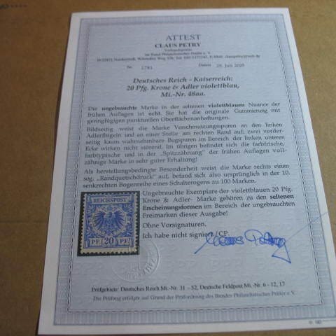 Sats fra Det Tyske Rige fra 1923, afstemt, Michel 330 B HT, titel “50 miljarden met sprong in roset met recent fotocertificaat Fleiner” med certifikat Klik på den blå "gå til varen" knap, for at købe eller byde på denne vare. Den samlede pris vil blive vist inden du afgiver dit bud.
