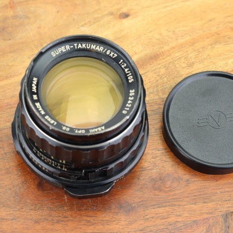 Tilbudt er et Pentax SMC Pentax-6x7 55mm f/4 ultravidvinkelobjektiv til Pentax 6x7/67 mellemformatkameraer.