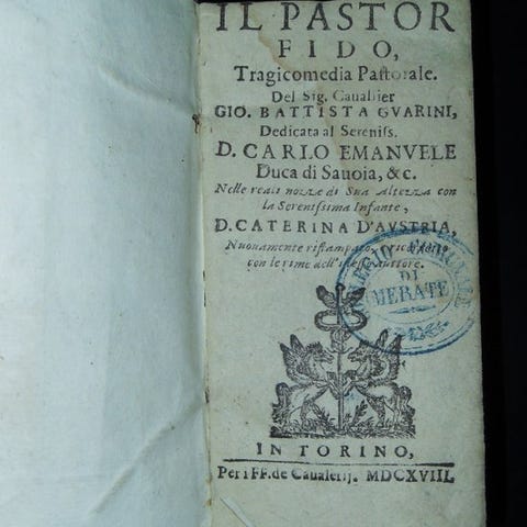 De Guevara Antonio. Vita, Getsti, Costumi, Discorsi og Lettere af M. Aurelio. I Venedig, hos Erasmo’s værksted; nær Vincenzo Valgrisi, 1548. Smuk Aldina-udgave af Marco Aurelios biografi, kejser, filosof og litterær. Det er portrættet af den perfekte prins, blevet en manual for høflig levemåde. Arbejdet indeholder også et kort portræt af Adriano Kejser ifølge Elio Spartiano og kejserens breve til forskellige venner om fred og krig, om ære og retfærdighed, om gyldne alder, om Roms forfald. Halvskindbind. Titlen i guld på ryggen i et felt. Blomsterornamenter i guld på ryggen. Typografisk mærke med en snoet slange på forsiden og colofonen. Dimensioner 16x10 cm, 314 sider, 4 blade. Fremragende stand.