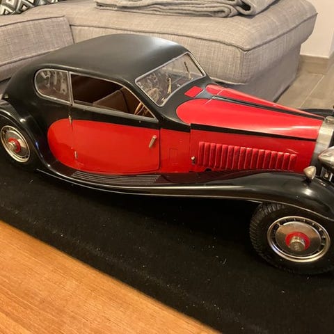 Motorhjelmen mangler hængsler, men jeg tror, at alle modeller har denne fejl. Spejlet er ødelagt og skal limes sammen igen.