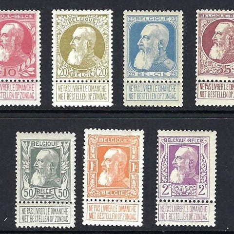 Belgien, Leopold II-serien med venstreprofil, OBP/COB 46/52, 1884–1891, ubrugt. Klik på den blå "gå til varen" knap, for at købe eller byde på denne vare. Den samlede pris vil blive vist inden du afgiver dit bud.