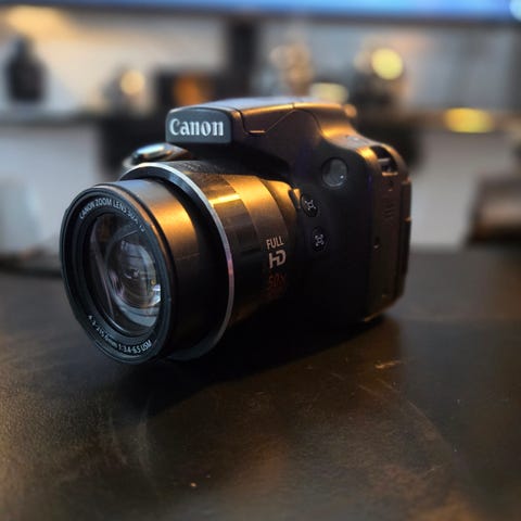 Smuk Canon PowerShot Zoom, monokular kamera. Kameraet er i rigtig god stand, med minimale brugsspor. Det kommer med æske, oplader, usb-kabel, snor og manual. Batteriet sidder i kameraet.