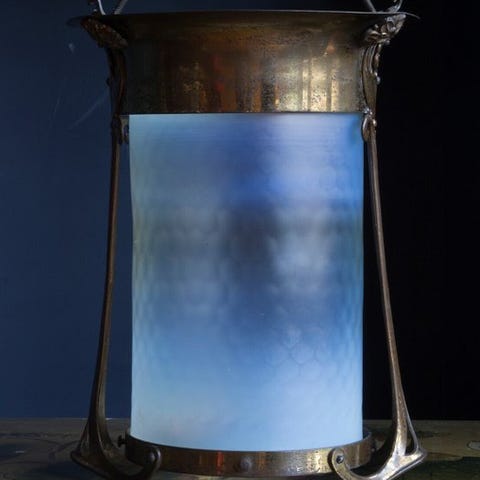 Venezia-lanterne i blæst glas med roset og bronzekæde.