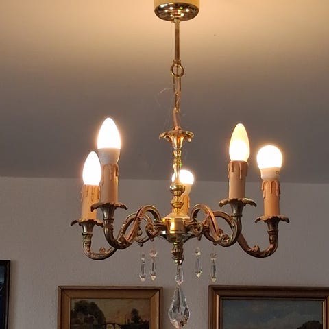 Sjældent og meget smukt gammelt plafonnier med 4 lyssteder.