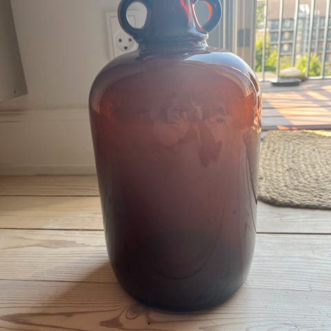 På siden er der originale ophæng med kordel, og halsen er udført cylindrisk.