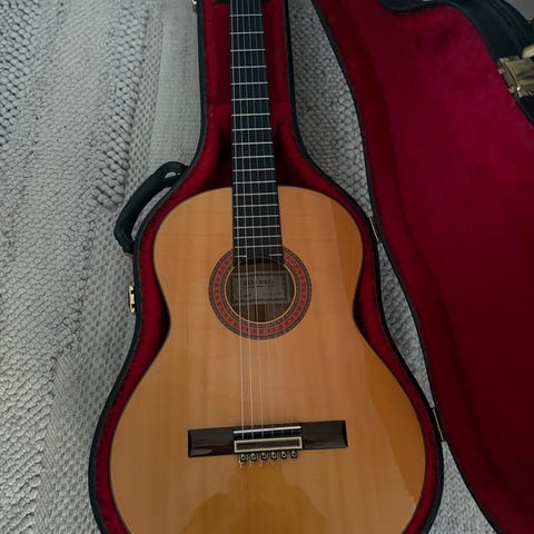 Mærke Alhambra, Model 3 F Cloud Dancer flamenco-guitar, helt ny og testet og funktionsdygtig, oprindelse Spanien, vægt 1,6 kg, top af tysk grantræ, sider og bund Sicomoro, hals Samanguila, gribebræt inderindisk rosewood, stemmeskruer nickel, inklusiv original gigbag, to saddler i forskellige højder til lav eller højere strengafstand. Klik på den blå "gå til varen" knap, for at købe eller byde på denne vare. Den samlede pris vil blive vist inden du afgiver dit bud.