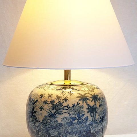 Færdiggjort med matchende luksuriøse Faux læder lampeskærme med fin print og guldfarvet inderside for en hyggelig lysfordeling. Som nyt!