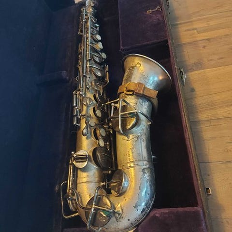 Meget smukt alto saxofon AMATI AA561 i B-dur, brugt i nogle år, med reviderede pads og mekanik af vores lut, og i god stand. Købt i 1993 i Prag. Leveres i sin smukke originale etui med mundstykke og ligatur. Der medfølger også rengøringsklud, svamp, spillesele samt et sæt nye pads.