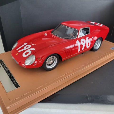 La P 5 var et af Pininfarinas mesterværker med en futuristisk linje for sin tid. Den opstod som et aerodynamisk studie på anmodning fra Ferrari og blev til et mesterværk, udstyret med V 12-motoren på 3000 cc fra Formel 1. Modellen sælges med den lille udstilling, god auktion.