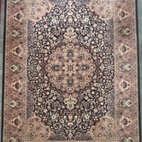 Smukt og dekorativt maskinsyet tæppe fra Sherazad-kollektionen, udført i et klassisk østligt mønster med rigt udarbejdede blomsteragtige motiver og et elegant centralt medaillon.