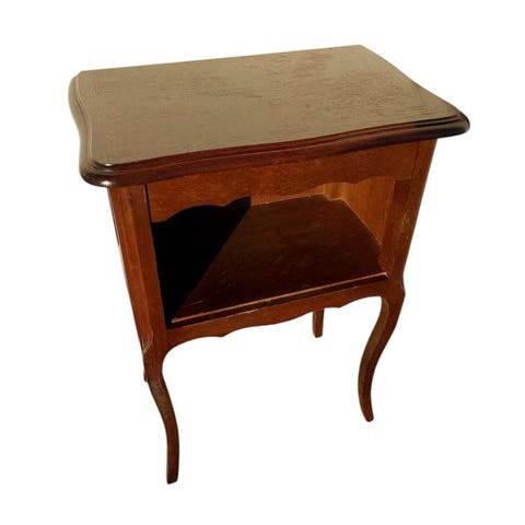 Væghængt træbord fra Frankrig, dateret omkring 1960’erne, med en skuffe og to hylder; cirka 65 cm høj, 46 cm bred og 30 cm dyb, i god brugt stand med mindre aldersrelaterede tegn. Klik på den blå "gå til varen" knap, for at købe eller byde på denne vare. Den samlede pris vil blive vist inden du afgiver dit bud.