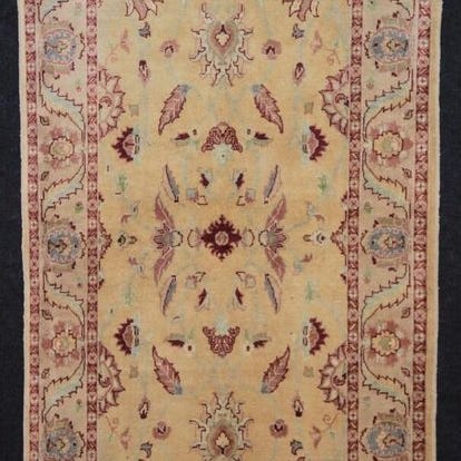 Et tæppe fra Indien, vævet af uld på bomuld, fra slutningen af det 20. århundrede, størrelse 350 × 250 cm, i god stand, med certifikat for ægthed. Klik på den blå "gå til varen" knap, for at købe eller byde på denne vare. Den samlede pris vil blive vist inden du afgiver dit bud.