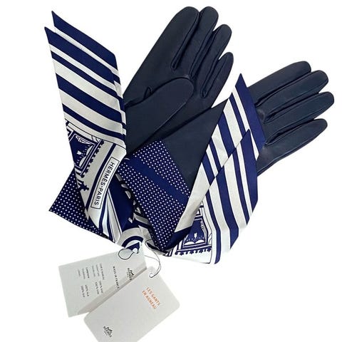 Mørkebrune Hermès (Soya) handsker i lammeskindlæder med silkelining. Disse handsker har den ikoniske Kelly-spænde, en model der blev lanceret for flere år siden og lejlighedsvis genopstår i nye Hermès-kollektioner, som i efteråret 2025, hvor prisen er €970.