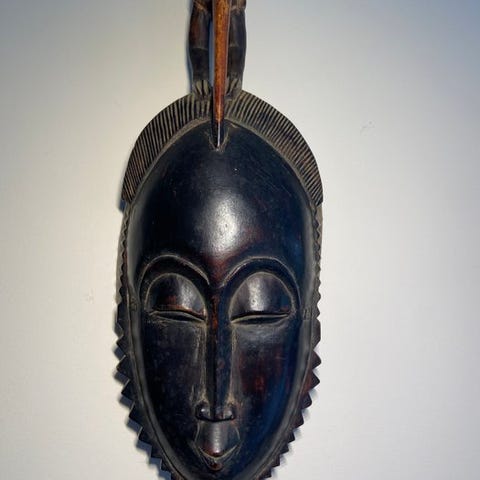 Træmaske fra Elfenbenskysten, fremstillet af Yaure-folket i midten af det 20. århundrede, provenance fra en privat samling samt Berthe Hartert- og Argiles-samlingerne i Barcelona. Klik på den blå "gå til varen" knap, for at købe eller byde på denne vare. Den samlede pris vil blive vist inden du afgiver dit bud.