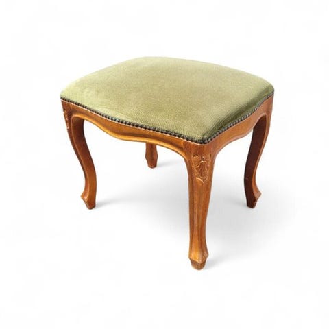 Forfinet récamier eller daybed bestående af to uafhængige sektioner, hvilket giver mulighed for flere konfigurationer — fra en klassisk daybed til en lille sofa eller tvillingeloungestole. Designet afspejler Louis XVI og den tidlige 20. århundredes neoklassicistiske stil, med en solid trækonstruktion med fløjlsben og en let distressed polykrom patina.