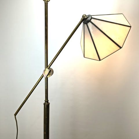 Hængelampe med gyldent messingsramme og triedri krystalprisme, der hænger i faldende cascade; 55 prismas, hver 25 cm høj (3,2 x 3,2 cm), samlet 45 cm bred og dyb, 60 cm høj, italiensk oprindelse, dateret 1980–1990, i god brugt stand og fuldt funktionel. Klik på den blå "gå til varen" knap, for at købe eller byde på denne vare. Den samlede pris vil blive vist inden du afgiver dit bud.