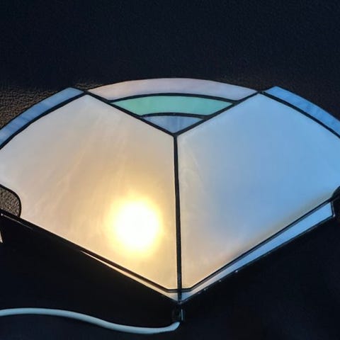 Franskfremstillet unik håndlavet lampe af mundblæst glas med indre dekoration af metalloxid i grøn-blå gradient og guldfarvede pulverprojektioner, ikke-originalt sort satin skærm, i god stand med tydelige brugsspor, højde 68 cm, bredde 45 cm, dybde 45 cm, vægt 3,2 kg, i funktion, Model Unikt fremstillet i Frankrig. Klik på den blå "gå til varen" knap, for at købe eller byde på denne vare. Den samlede pris vil blive vist inden du afgiver dit bud.