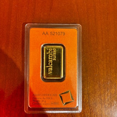 20 gram - Guld - Valcambi, Switzerland - Forseglet & Med certifikat