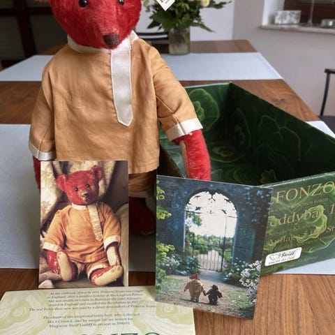 Steiff Teddybear 150 års fødselsdag Margarethe Steiff, mohair, 39 cm høj, oprindelse Tyskland, produceret 1990–2000, i god stand, med Steiff-papirer, knap og faner, porcelænsmedaillon på sidelinen, emballage med manual. Klik på den blå "gå til varen" knap, for at købe eller byde på denne vare. Den samlede pris vil blive vist inden du afgiver dit bud.