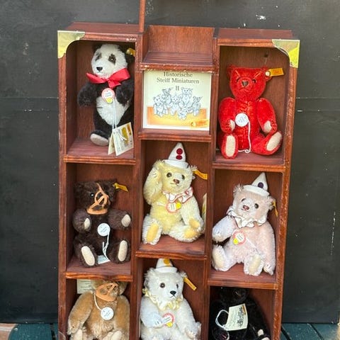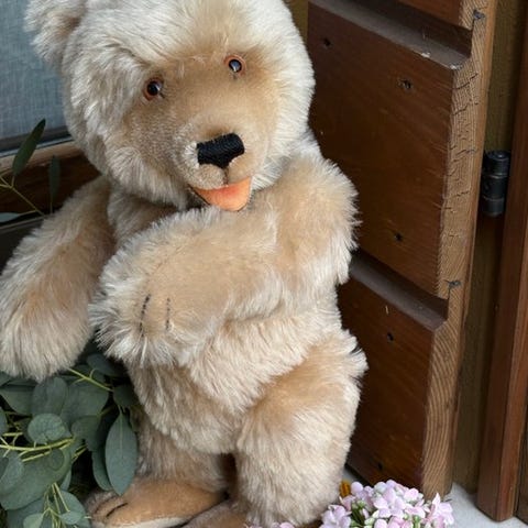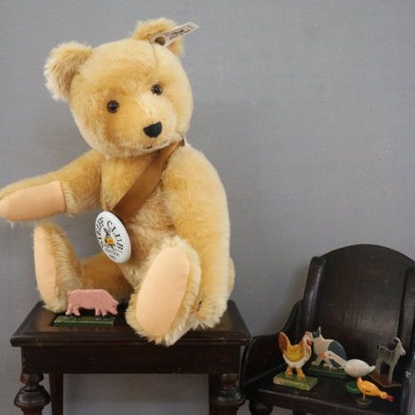 Bjørnen er i god stand, har Steiff-papirmærke, Steiff-knappen og Steiff-flag. Den har også det porcelænsmedaljon til at hænge på silkesnoren.
