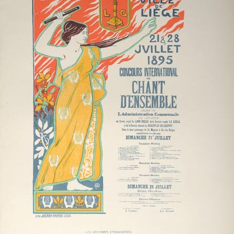 Denne litografi blev inkluderet som en plade i Ernest Maindrons bog "Les Affiches étrangères illustrées (1886-1895)" udgivet i Paris af l'Imprimerie Chaix i 1897.