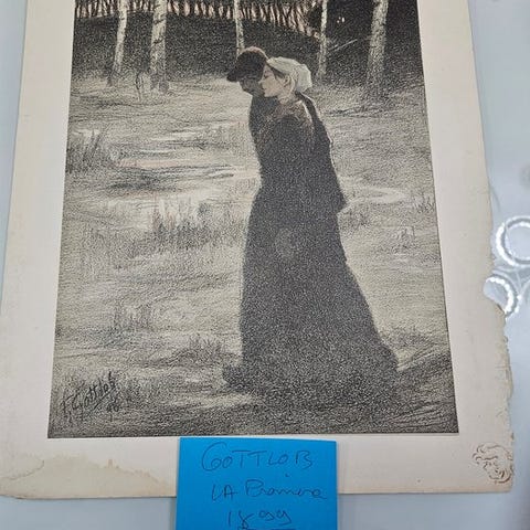 I god stand, med bløde håndteringsfurer ved kanterne og en mindre plet øverst på margen. Pålimet papir. Ikke indrammet.
