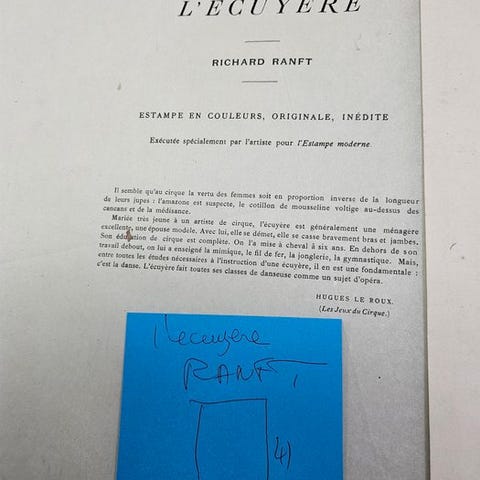 Primærie Champenois for CH. Masson H. Piazza | Paris (april 1898) | 24,50 x 35 cm | et blad og en serpente | Sjælden original litografi trykt i farver, udført af Henry Detouche til L'Estampe Moderne, serie nummer 12, udgivet i april 1898. En af de 50 luksusprøver trykt på Japon med store margener, kunstnerens signatur på pladen, blindstempel fra udgiveren, der viser et barns profil i margen nederst, nummereret tryk af luksusudgaven på bagsiden, let mærke fra det tidligere tryks stempel på forsiden; graveringen er forudgået af en serpente med kunstnerens navn, titel og en tekst af kunstneren; serpenten er blank. En smuk fransk månedlig publikation