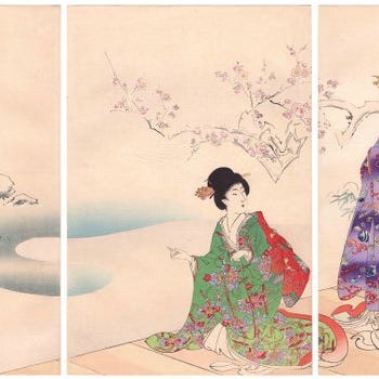 'A depiction of court ladies withdrawing during a historical fire' from 'Onko...