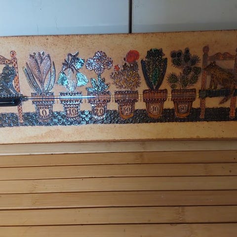 Gamle og flotte reklameskilt i lithografisk stålplade, der viser PLV (Publicité sur Lieu de Vente) 'St RAPHAËL quinquina', med de berømte stiliserede tjenere, 'Gros Rouge' og 'Blanc Sec', skabt af grafiker og plakatkunstner Charles LOUPOT (Nice 1892 - Arcs-sur-Argens 1962). Signeret og datert 1948! Den anden side viser også lithografier af saltede hasselnødder til cocktails, med tavlen 'lakoid D.R PLAS Paris.' Med hensyn til denne side kan der være en trykfejl, da jeg aldrig har set en lignende. Termometeret fungerer perfekt.