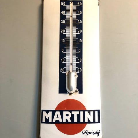 Vintage fransk litograferet reklame-termometer med to sider, underskrevet af Charles Loupot og dateret 1948, i god stand med mindre slid og aldersrelaterede pletter, dimensioner 24,5 cm høj, 19 cm bred, vægt 200 g. Klik på den blå "gå til varen" knap, for at købe eller byde på denne vare. Den samlede pris vil blive vist inden du afgiver dit bud.