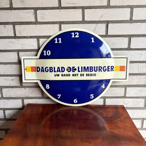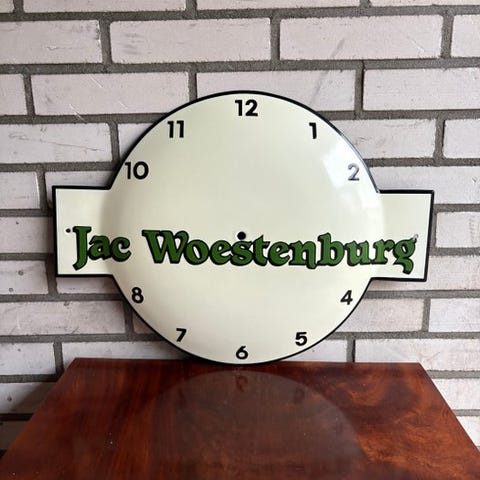 Original emaljeret urplade fra Roel Wester B.V. med indskriften Winner Super Jaar Klassement A1, emalje på stål, oprindelse Nederlandene, dimensioner 40 x 46 x 1 cm, 2 kg, i god brugt stand med let ældningstegn og pletter, urværk mangler. Klik på den blå "gå til varen" knap, for at købe eller byde på denne vare. Den samlede pris vil blive vist inden du afgiver dit bud.