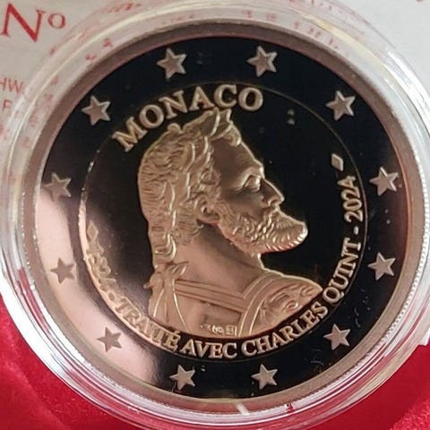 Monaco 2-euro 2024 proof mønt med 500 Ans du Traité de Burgos - Charles Quint, UNC. Klik på den blå "gå til varen" knap, for at købe eller byde på denne vare. Den samlede pris vil blive vist inden du afgiver dit bud.