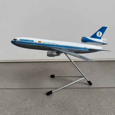 Skalamodel af Starfighter F 104 i poleret aluminium. Fremstillet af den italienske modelgieter Fomaer. Bemærk: modellen står på en aluminiumfod, der også blev brugt til F 105 Thunderchief fra Verkuyl (se foto). Holdbar og mere og mere sjældent samlerobjekt. L: 40 cm, B: 16 cm, H: 20 cm.