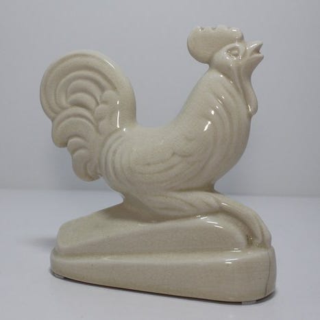 Siddende kat i hvid Art Déco keramikskulptur fra Longwy, Belgien, signeret; 22 cm høj, 10,5 cm bred, 21 cm dyb, vægt 1,020 kg; i god stand. Klik på den blå "gå til varen" knap, for at købe eller byde på denne vare. Den samlede pris vil blive vist inden du afgiver dit bud.