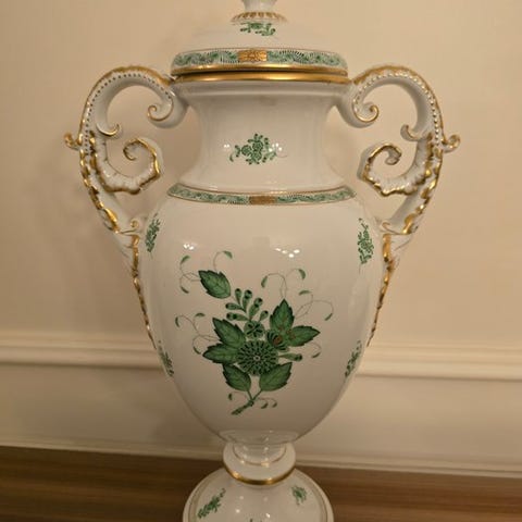 Porcelænsvasen Amphora, Tjekkiet, estimeret periode 1910–1920, Shepherdess-motiv, mål 32,5 × 34 × 15,5 cm, i fremragende stand med let slitage. Klik på den blå "gå til varen" knap, for at købe eller byde på denne vare. Den samlede pris vil blive vist inden du afgiver dit bud.