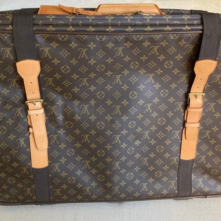 En taske med lynlås foran på kufferten. Indvendig foring i brunt lærred, en lynlåslomme, to elastiske stropper. I fremragende stand, hurtig og forsikret forsendelse.