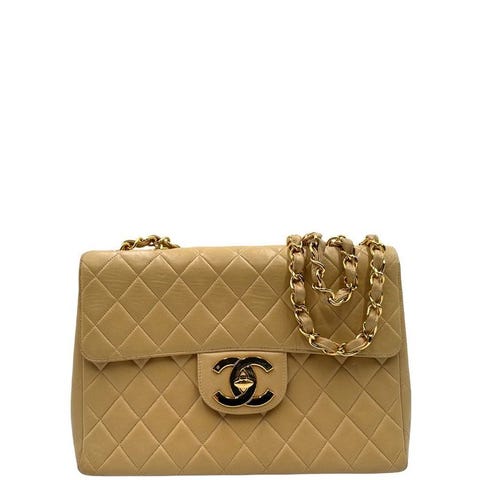 Stor klassisk enkel taske med enkel lukning, Chanel, i sort quiltet læder, bijouterie forgyldt guld.