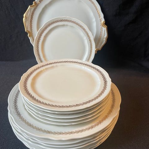 12 lommeknivsholdere signeret Limoges, Frankrig, i perlemorshvid farve, forgyldt med guld på gulddetaljerne, som vil tilføre farve til dine borde og overraske dine gæster.