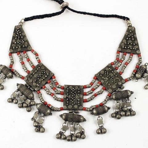 Dette antikke sølvhalskæde har et traditionelt berbersk design, der viser fin håndværk og et ægte sølvmærke, der afspejler dets kulturelle oprindelse.