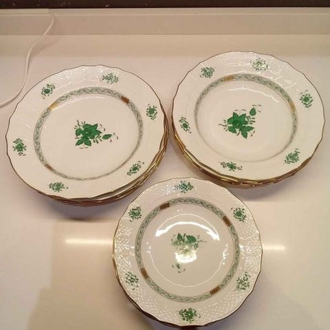 LONGWY - sjældent dessertservice i flerfarvede cloisonné-emaljer på fajance