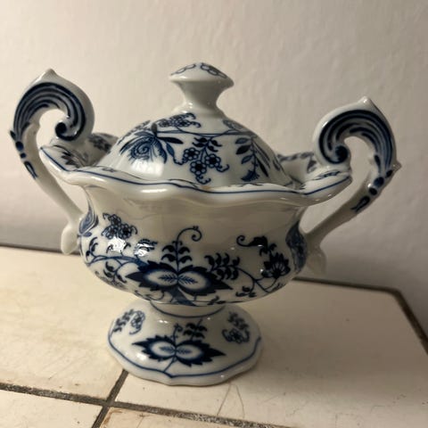 Materialer: Hovedkroppen er en nautilus- eller perlemorsskal, og bunden, håndtaget og spidsen er lavet af en sølvfarvet metal eller alpaca.