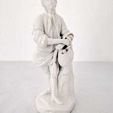 Porselænsestatuette fra Augarten Wien af Der Rosenkavalier, tegnet af Albin Döbrich, cirka 1930–1940, cirka 20,5 × 11 cm (højde 20,5 cm, dybde 11 cm), i fremragende stand. Klik på den blå "gå til varen" knap, for at købe eller byde på denne vare. Den samlede pris vil blive vist inden du afgiver dit bud.
