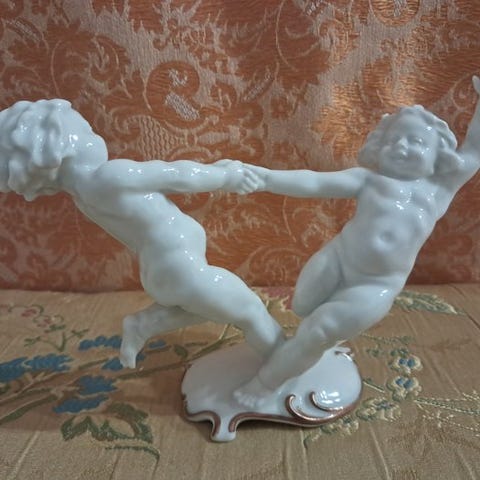 Porcelænsfigur i art nouveau-stil, signeret, lavet i Tyskland, 14 cm høj, 7 cm bred og 6 cm dyb, i fremragende stand. Klik på den blå "gå til varen" knap, for at købe eller byde på denne vare. Den samlede pris vil blive vist inden du afgiver dit bud.