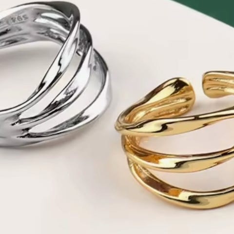 Elegante og iøjnefaldende ringe i sølv- og guldlook sælges. De kan justeres i størrelsen og er kort sagt bare yndige.