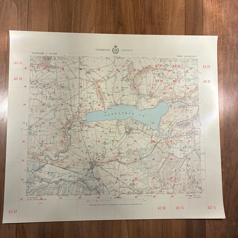 Vægkort fra 1964: Gammelstrup og omegn (perfekt stand)