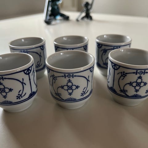 Porcelæn, Musselmalet bakke og to æggebæger., Musselmalet