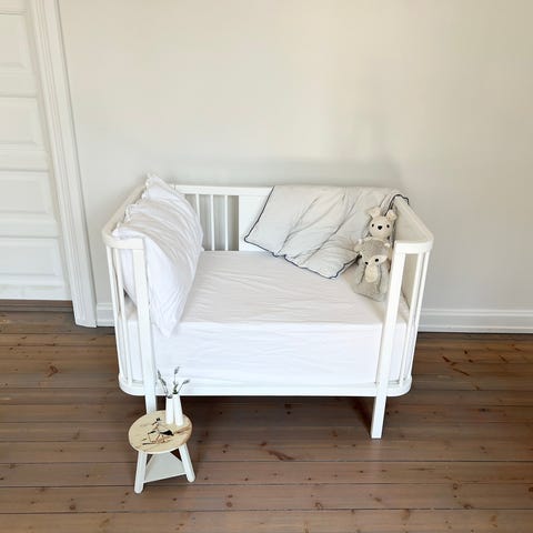 Smuk og flot seng. Der er alt til at kunne lave både tremmeseng, som er sænket og løftet samt juniorseng inkl. sengehest.