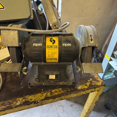 Bænkslibemaskine H. Knudsen kraftig. Det hele støbt i alu.