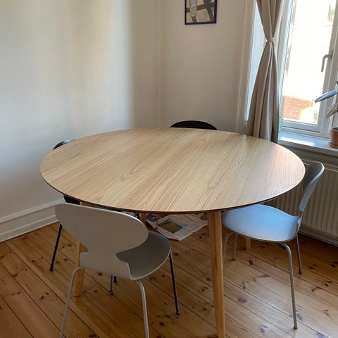 Bordplade i afsyret egetræ og med ben fra Ilva. Sælges pga flytning. Hentes i stueetage. 500 kr